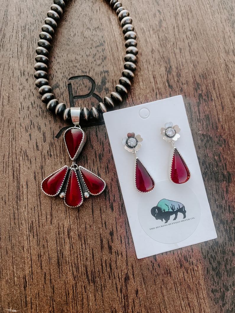 Red Garnet and Flower Earrings