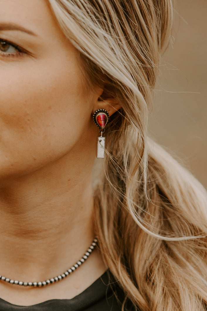 Pink Dahlia and White Buffalo Dangles