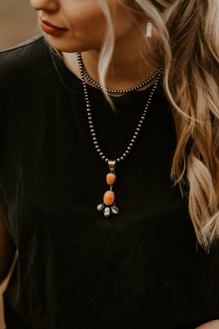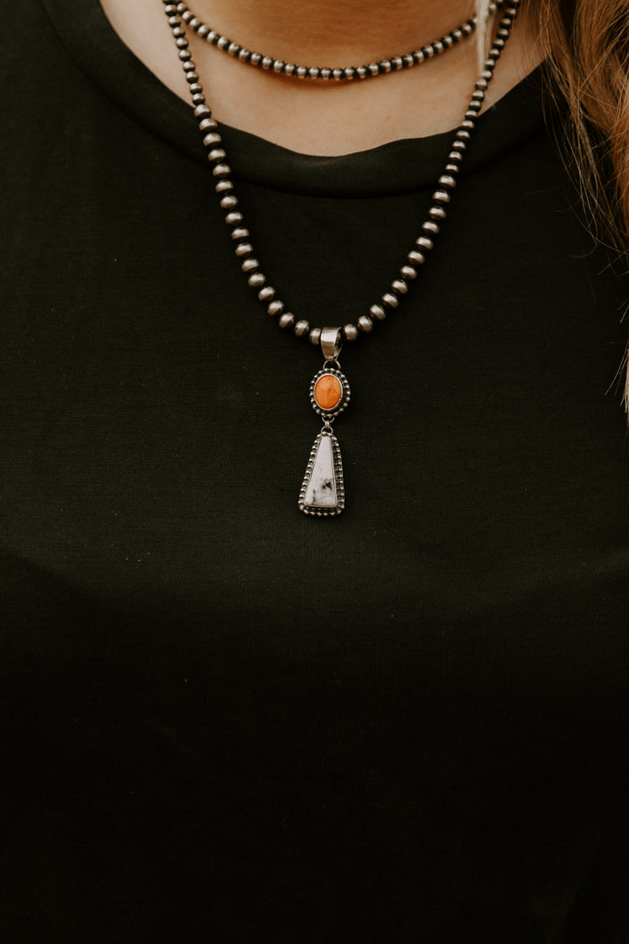 Spiny Oyster and White Buffalo Dangle Pendant