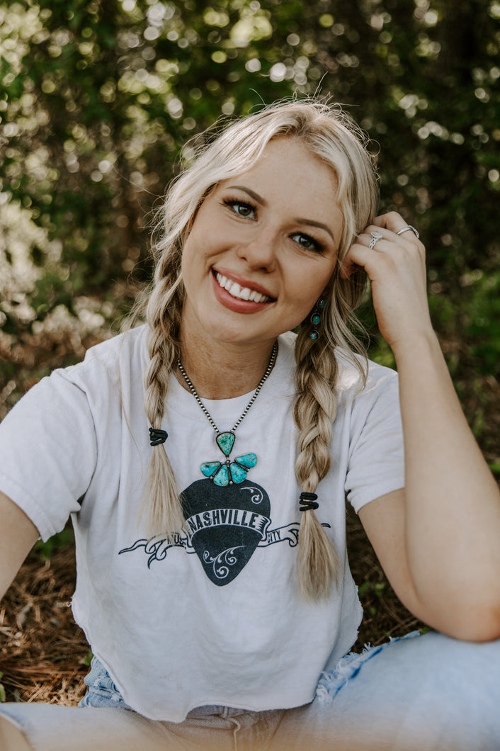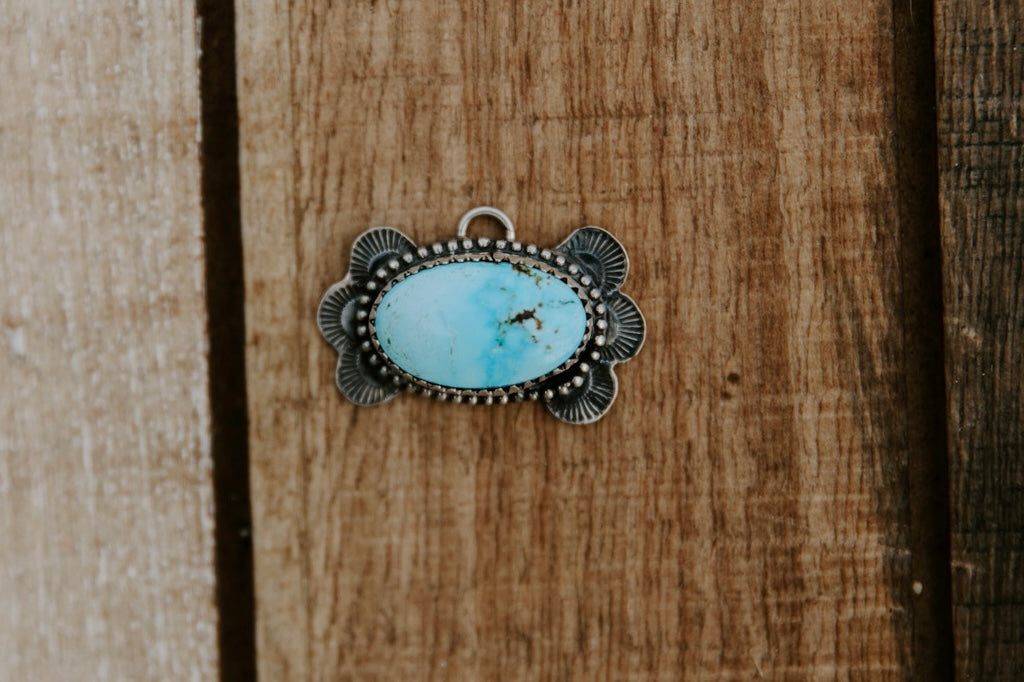 Stamped Kingman Turquoise Pendant